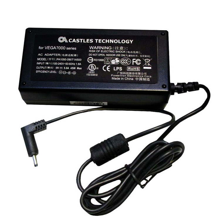 منبع تغذیه دستگاه کارتخوان Castels V5000 انرژی مورد نیاز خود را از طریق ولتاژ 220 ولت برق شهری تغذیه کرده و با ولتاژ خروجی ۹ ولت و جریان 5 آمپر توانایی تامین برق مورد نیاز دستگاه های کارت خوان را دارد.